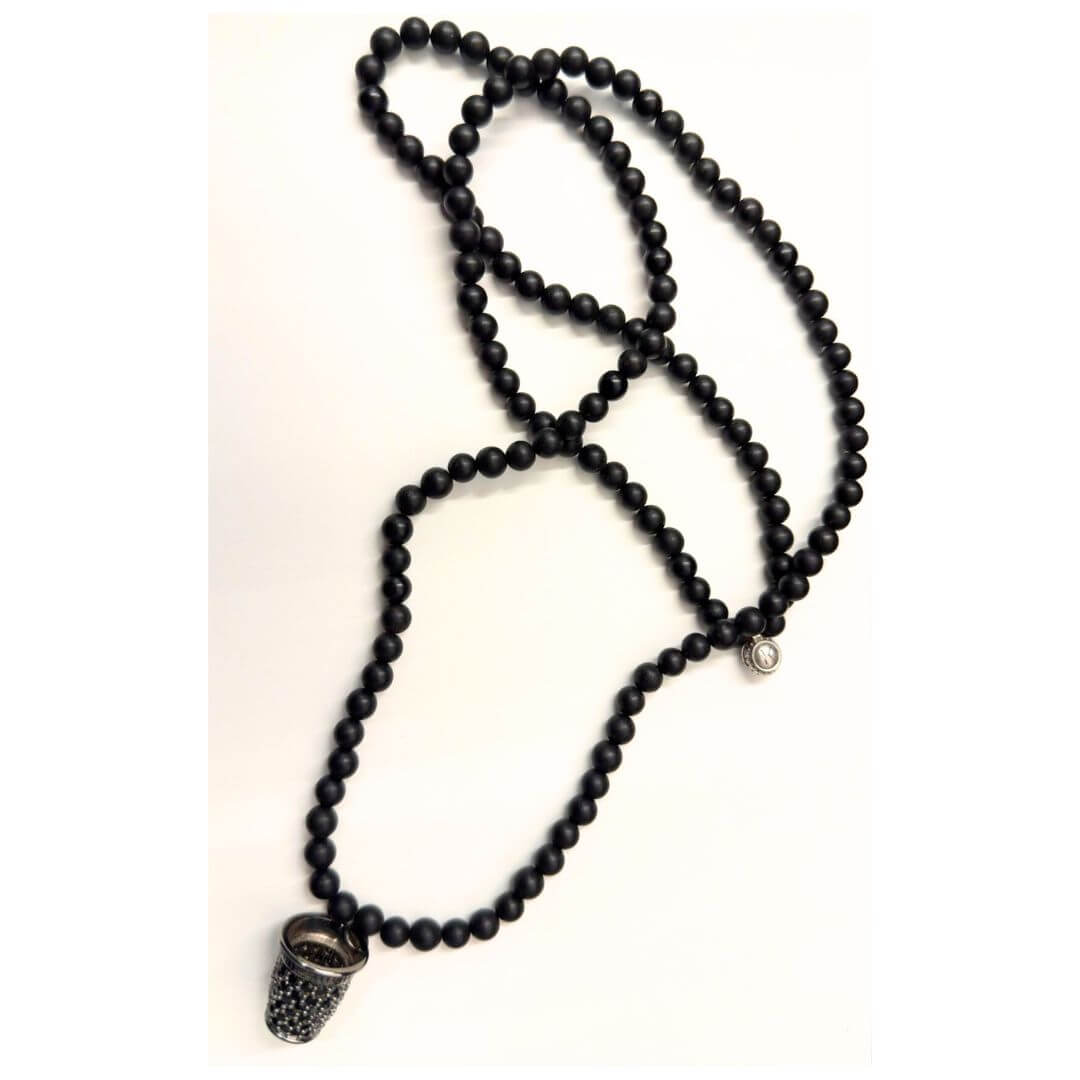 Pietre di giaietto annodate a mano e ditale big in argento 925 con pietre creano una collana sofisticata e elegante perfetta per chi ama accessori con un’anima e un messaggio.