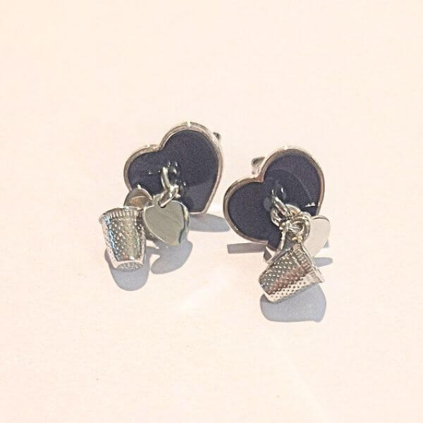 Orecchini a lobo a forma di cuore con ditali Ninin pendenti interamente in argento 925. Iconici e senza tempo, potrai indossarli sempre grazie alla leggerezza che li contraddistingue.